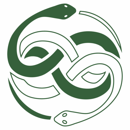 Due serpenti intrecciati, ognuno che morde la coda dell’altro in un cerchio eterno di forza e mistero.